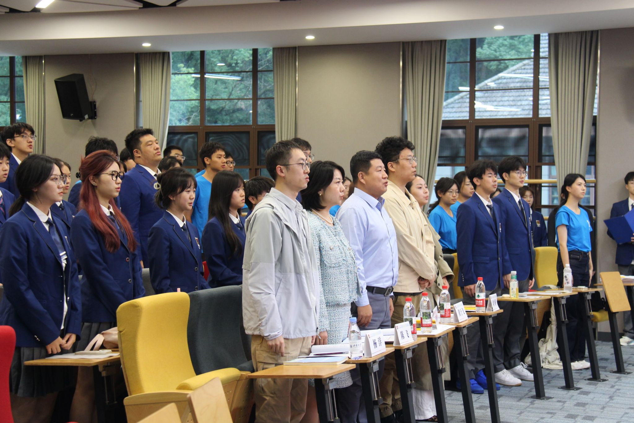 学生代表大会在庄严的国歌声中拉开帷幕。