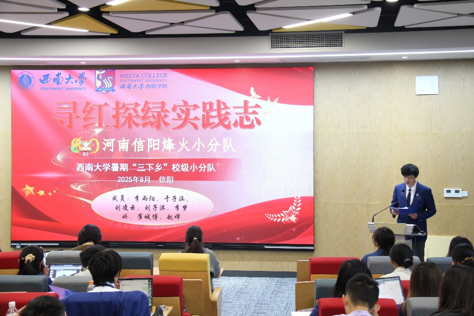 学院2025年暑期“三下乡”社会实践团主要负责人马梓媛围绕“以青春之名赴实践之约,以实干之力绘振兴画卷”的活动主题,详细介绍了院队探访东升村解码乡村振兴经验、赴敬老院送温暖、为留守儿童开设“澳洲课堂”以及高温入户调研并贡献青年建议等活动开展情况。