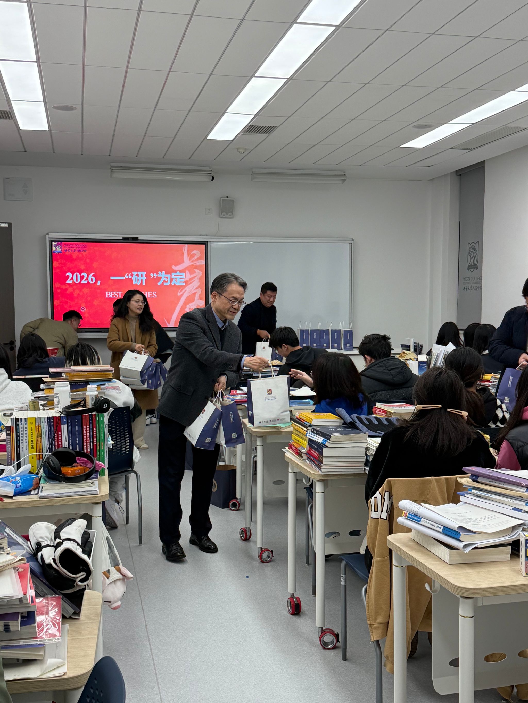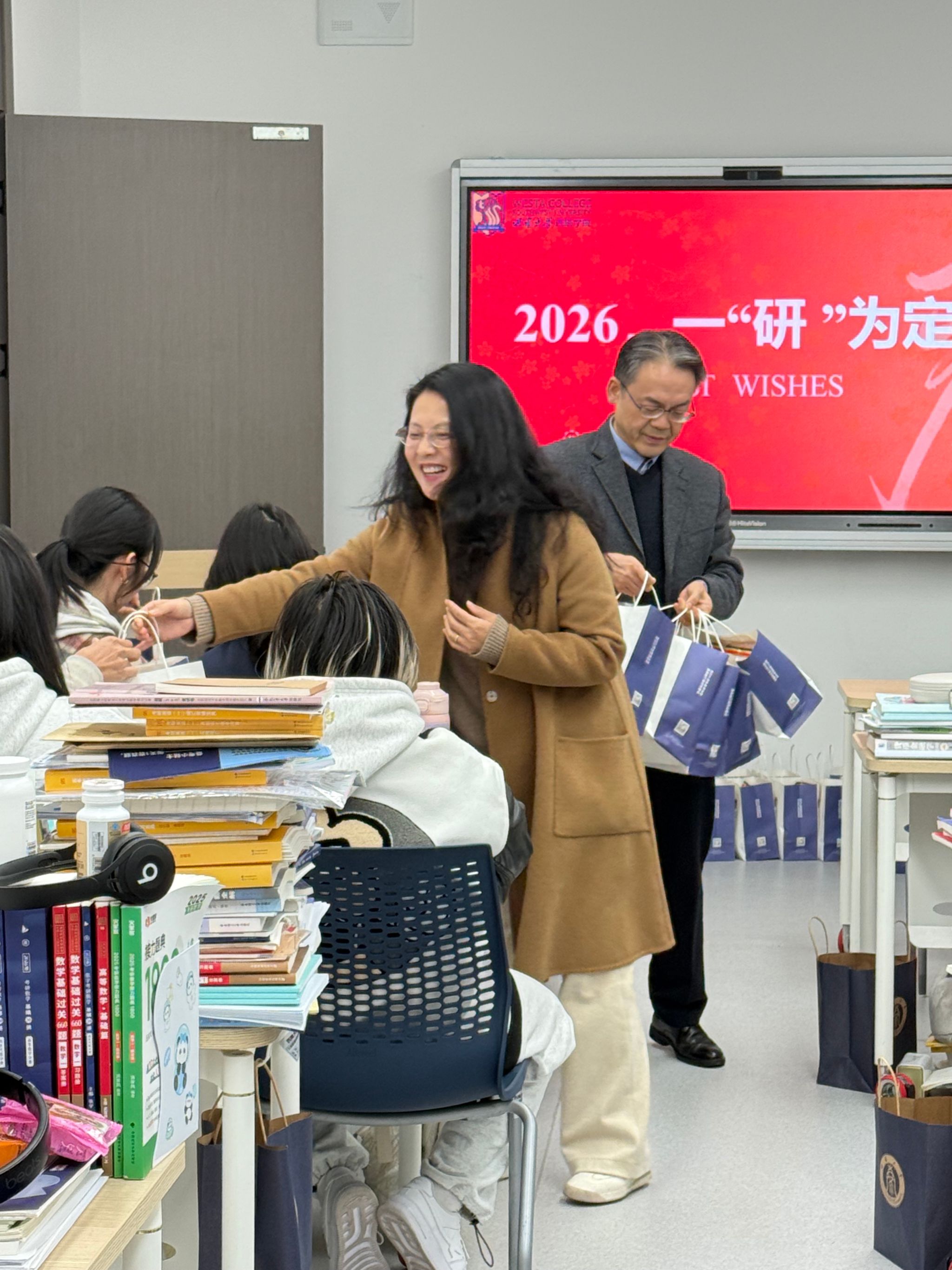 随后,学院领导将“考研爱心加油包”送到每位学子手中,礼包里的每一份礼物都承载着学院的深切关怀,愿学子们“苹”心备考,考运“旺旺”,发挥超“棒”,“笔”定上岸,“橙”功圆梦。