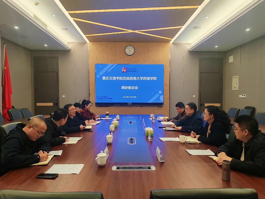12月18日下午,重庆文理学院党委常委、副校长王东强率队莅临西塔学院开展专题调研。学院领导班子成员及办公室负责人参加座谈。双方围绕中外合作办学机构申报与运行管理、国际化人才培养实践、国际科研合作及项目拓展等议题开展了深入交流和分享。