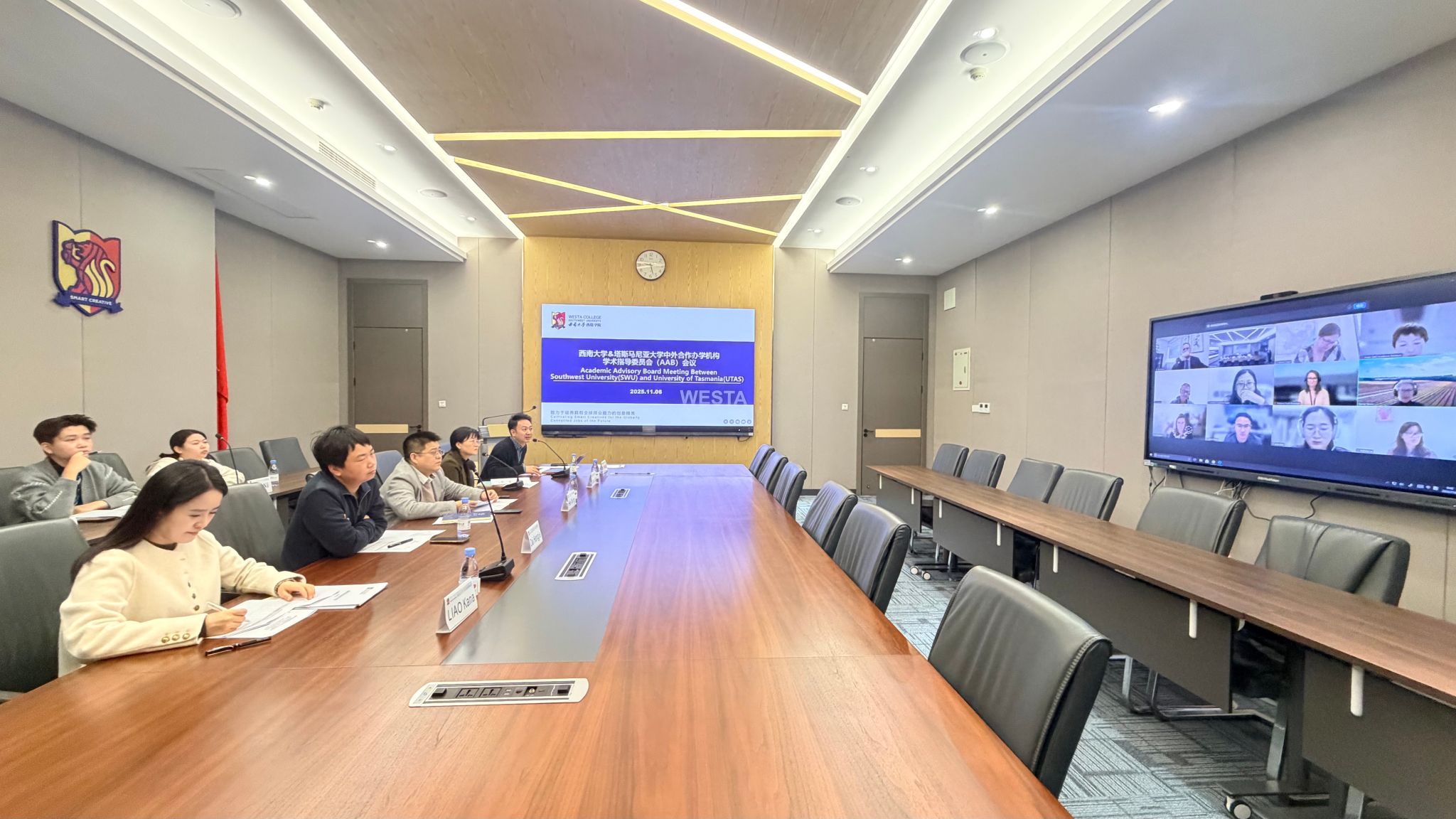 11月6日上午,西南大学&塔斯马尼亚大学中外合作办学机构学术指导委员会(AAB)2025年秋季学期会议以线上线下相结合的方式在西塔学院C2307召开。出席此次会议的西南大学代表有西塔学院副院长何兴教授、电子信息工程学院陈玲副教授、食品科学学院戴宏杰副教授及西塔学院相关科室工作人员;塔斯马尼亚大学代表有国际关系部副部长Tristanne Scott-Durairajah 女士、理学与工程学部业务发展与合作关系部负责人Rachel Perkin女士、农业研究院Alistair Gracie教授、工程学院教学工作副主任Sarah Lyden博士等人。