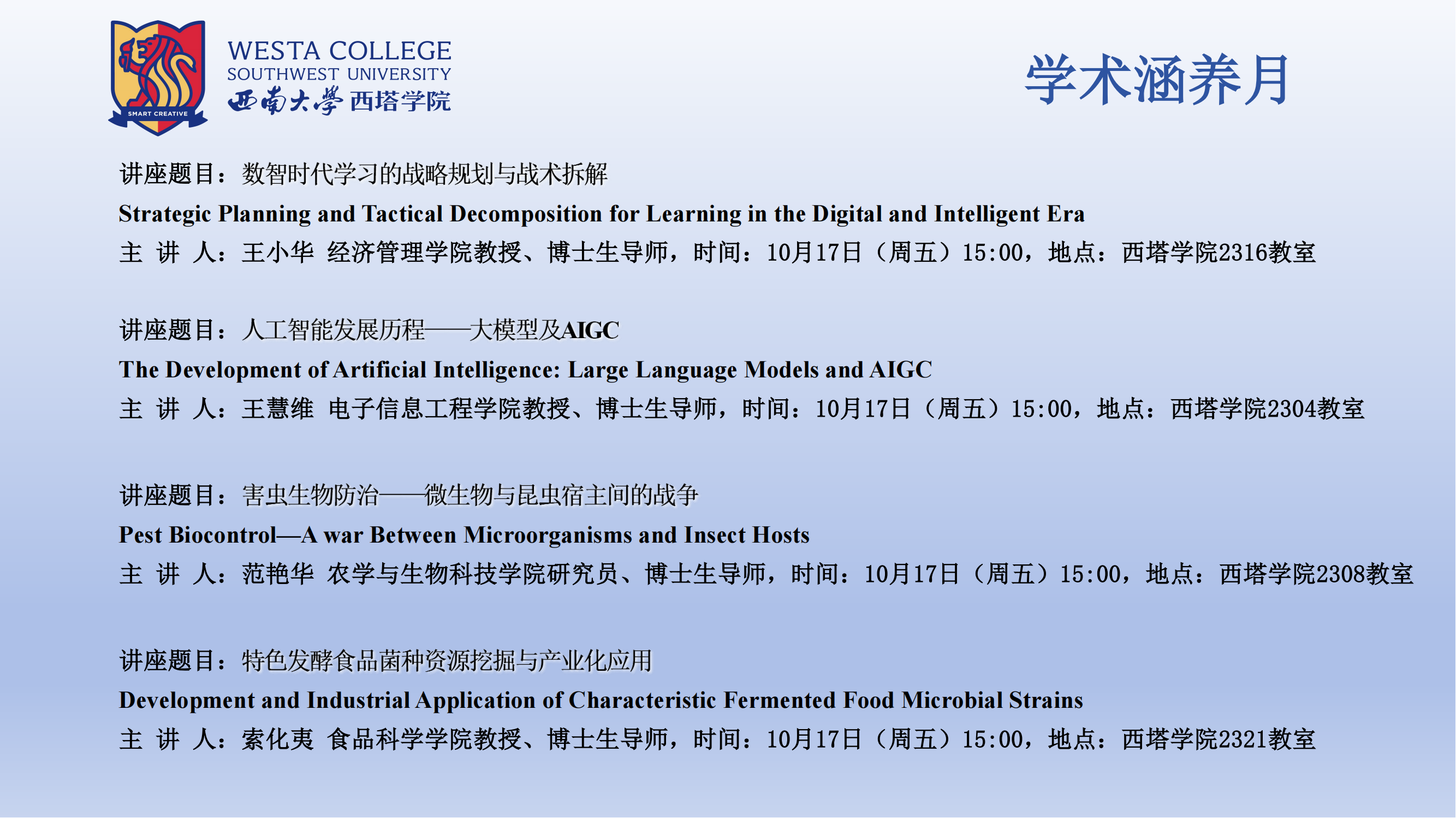【西塔讲堂(Westa Forum)】第15期活动预告
