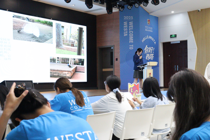 高年级学长学姐们以2025年暑期访学经验分享为题,图文并茂地展示了澳方大学的校园生活,从学术科研、文化体验等方面介绍在澳方大学的访学收获,为新生提供了国际交流参考,现场互动积极,反响热烈。