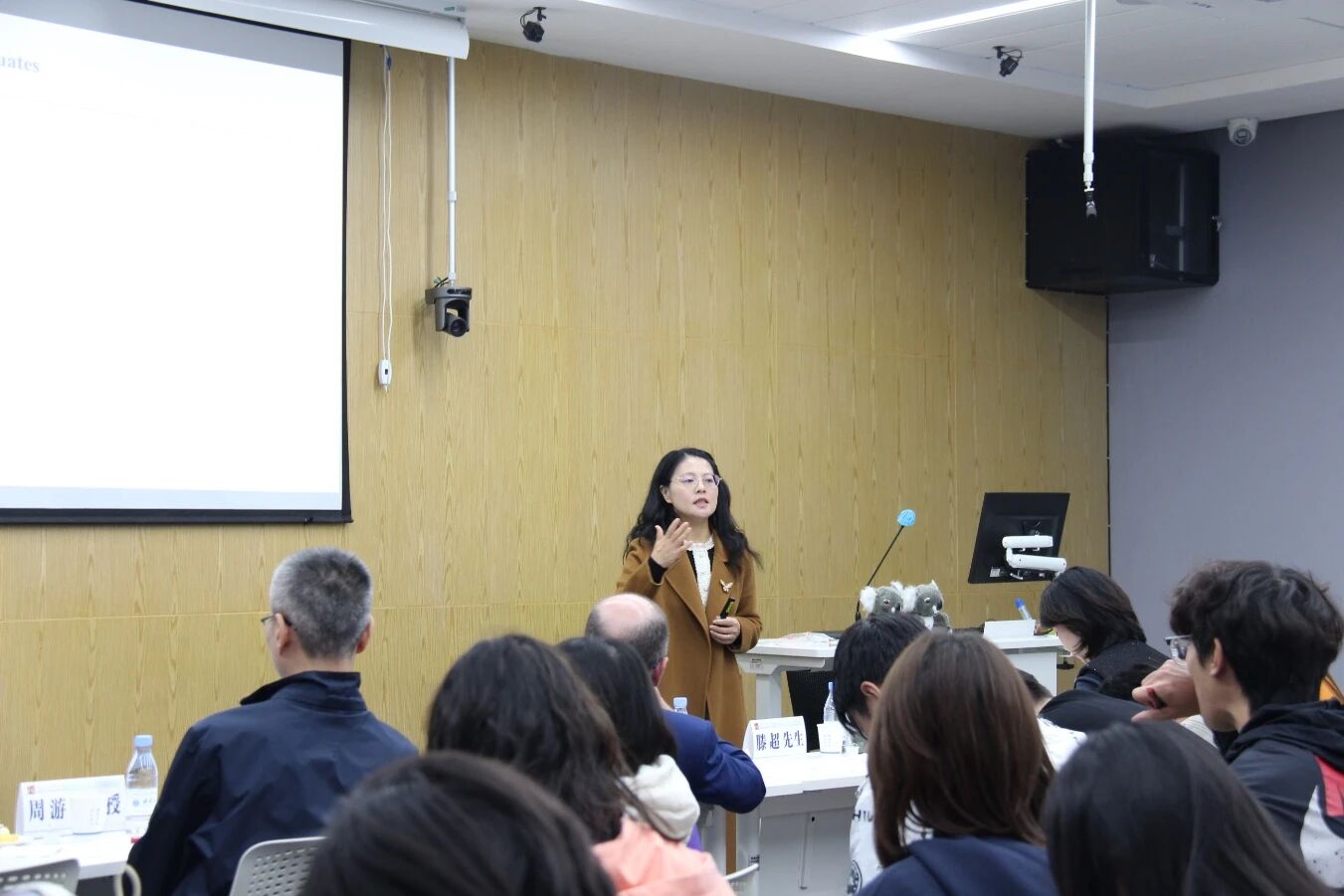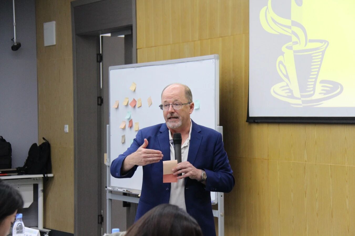 随后的自由讨论环节,现场氛围热烈。同学们将关于学业规划、澳洲文化生活的思考与疑问写满纸条。两位院长与周游老师随机抽取问题,耐心且风趣地回答了同学们有关双学位的选择、研究方向的确定以及澳洲历史、多元文化、生活习俗等问题。