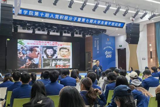 2025年11月14日晚,学院在一楼多功能厅举行第十期入党积极分子暨第七期大学生骨干培训班第四讲。学校档案馆、校史馆、博物馆郑劲松副馆长讲授“热血青春信仰芳华——党史在西大”专题党课。全体学员认真聆听。