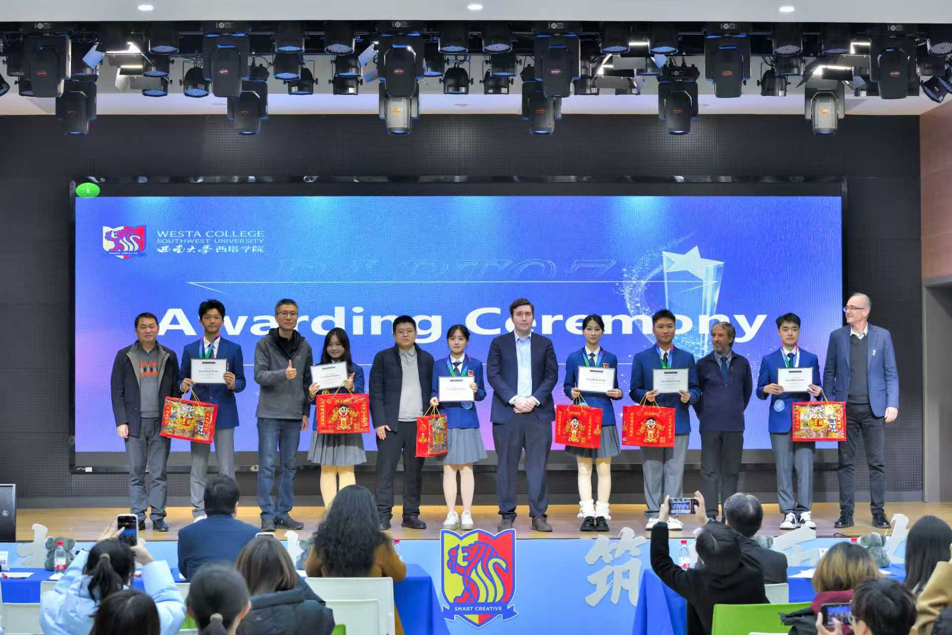 11月23日晚,学院在一楼多功能厅成功举办2025年“青春飞扬 筑梦西塔(Youth Soaring, Dreams Ascending)”西塔之星英语风采大赛决赛。本次大赛邀请了学校国际合作与交流处副处长褚修伟、学校助学中心主任孙金春、外国语学院副院长张俊、蚕桑纺织与生物质科学学院专业负责人周游以及学院英语教师Luke Murphy、Attila Jardan和Mile Klindo担任评委,西塔学院党政班子、相关科室老师及各年级学生代表共同出席了活动。