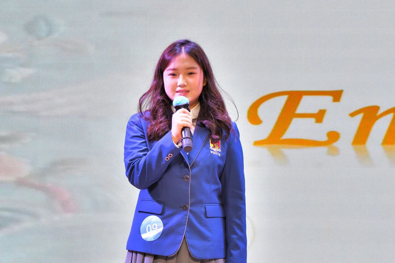 决赛共设置英语主题演讲、英语趣味配音和即兴演讲三个环节。第一环节以“Westa's Voice, China's Stories”为主题,选手们通过视频、图片及现场表演等形式全方位地展现对于传统文化及时代发展的认识,演讲涵盖中国舞、变脸、茶文化、刺绣、簪花、乡村振兴等多个主题,兼具文化厚度与时代温度,既彰显了青年一代对中华优秀传统文化的热爱与传承担当,更传递出当代学子坚定文化自信、主动讲好中国故事的青春态度。