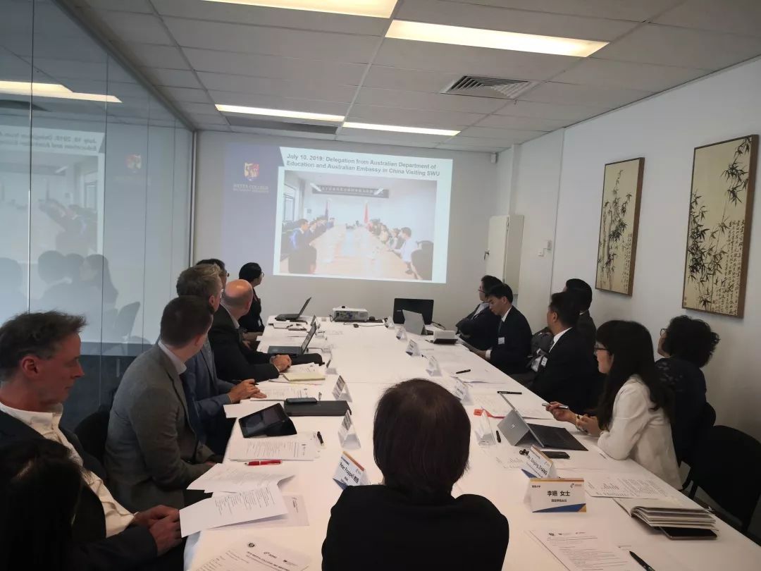 西澳大学唐东尼部长和塔斯马尼亚大学罗伯副校长分别作发言。澳方两校代表对远道而来的西南大学代表团表示热烈欢迎,他们肯定了西塔的工作,对学生在澳大学学习的表现给予了高度评价,并表示将继续共同支持西塔学院的发展,将合作推向新的高峰。