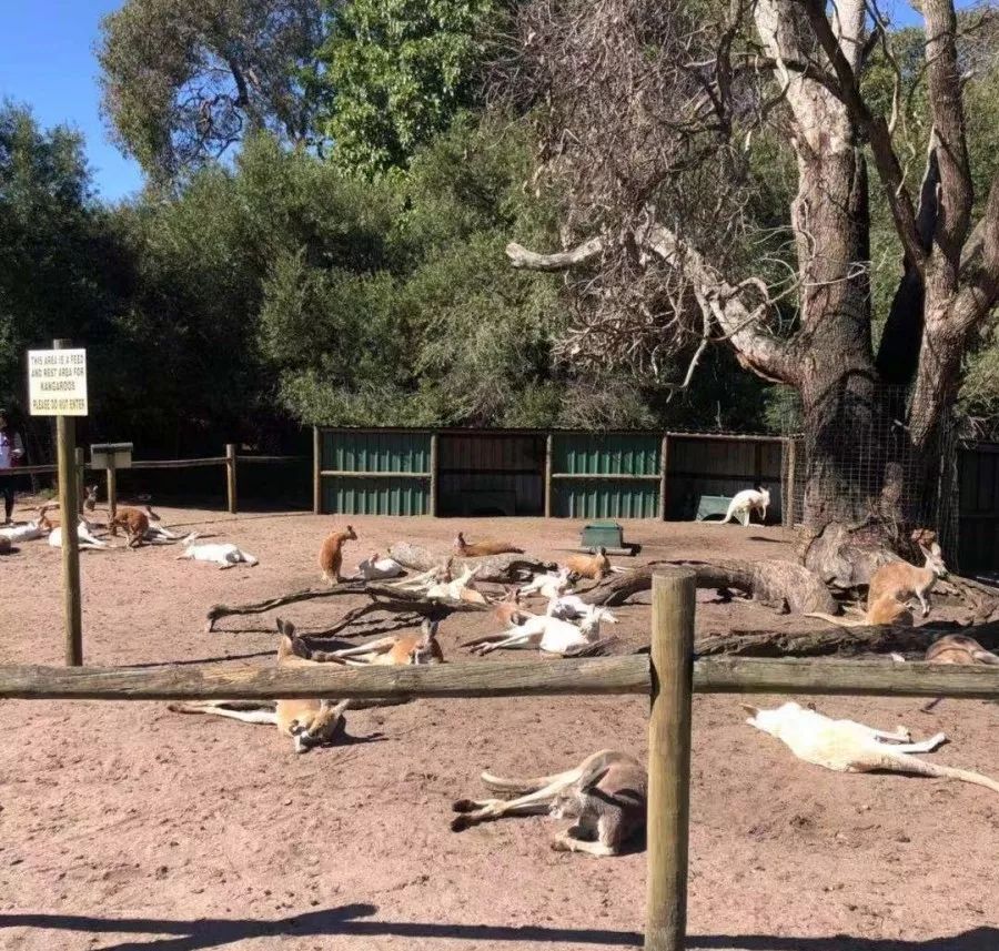 养在动物园里的袋鼠,在原野中蹦跳七八米的活力和野性早被磨平,没有猛兽天敌的威胁,这是一片安然祥和的天堂。